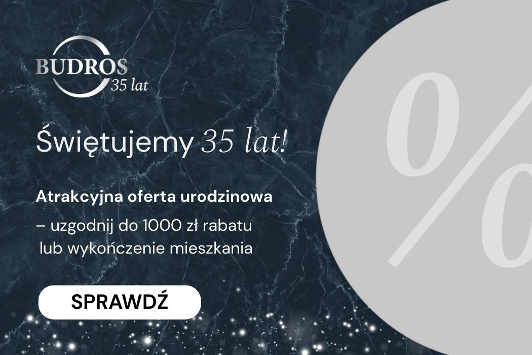 Czytaj więcej: 35 lat firmy Budros – oferta urodzinowaOd 35 lat budujemy w Trójmieście, tworząc miejsca, które stały się domem dla pokoleń. Z tej okazji przygotowaliśmy atrakcyjną ofertę urodzinową na mieszkania w Gdańsku i Gdyni – uzgodnij rabat cenowy lub wykończenie…